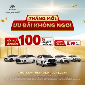 Với mong muốn tri ân khách hàng đã luôn tin yêu và đồng hành cùng Toyota trong suốt 30 năm qua, Toyota Việt Nam và Toyota Từ Sơn triển khai chương trình khuyến mãi “Tháng vàng dịch vụ, vạn lời tri ân” dành cho tất cả các khách hàng làm dịch vụ tại từ ngày 01/11 – 31/11/2025 với thông tin chi tiết như sau: