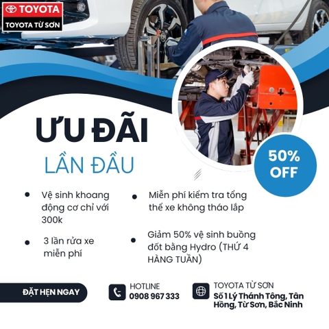 Chương trình áp dụng với tất cả các hãng xe và dòng xe. Quý khách hàng lần đầu đến Toyota Từ Sơn làm dịch vụ bảo dưỡng, sửa chữa sẽ được hưởng trọ...